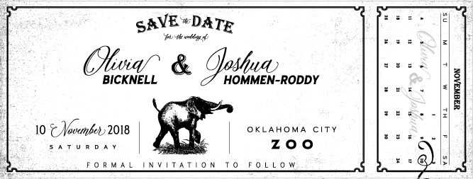 A save the date with a tear off calendar on the side that fits perfectly in a wallet!